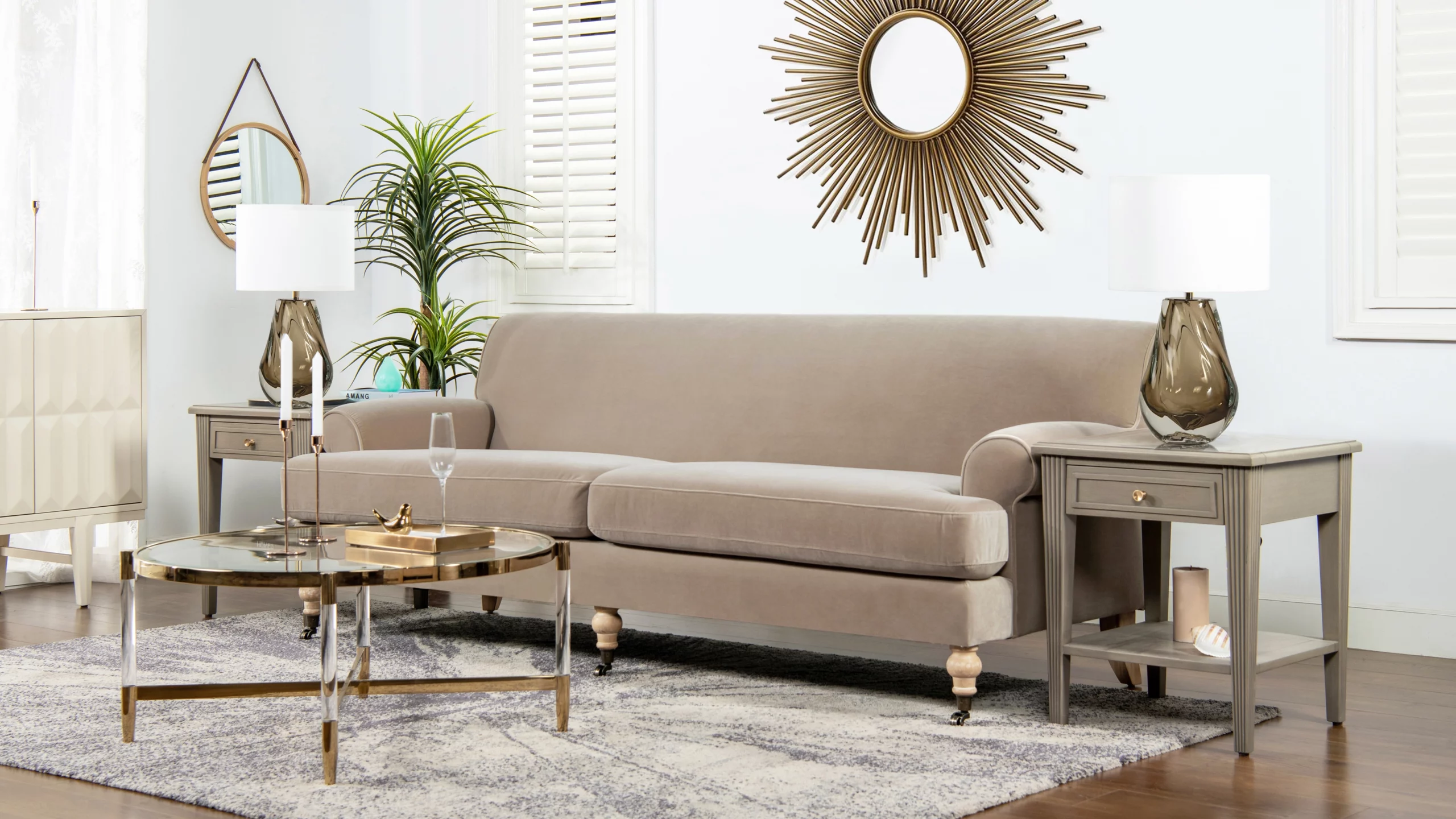 Best Pirce ๐ Dauphin Grey Cashmere Gold Accent 5-Drawer Wood Desk by Jennifer Taylor ๐