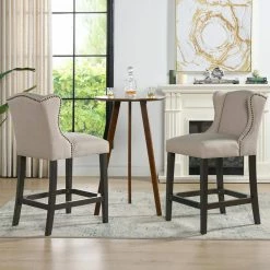 Promo ๐ Vesper 30 in. H Country Gray Linen Round Backless Bar Stool by Jennifer Taylor ๐งจ