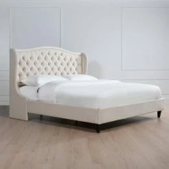 Brand new ✔️ Manhattan Shelter King Platform Bed Frame, Light Beige Linen by Jennifer Taylor 😍