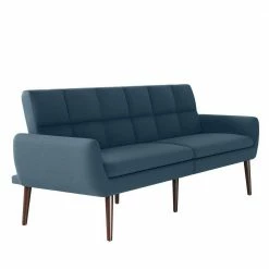 Outlet โ Kingston Light Blue Linen Mid Century Modern Sofa with Natural Legs by Handy Living โ