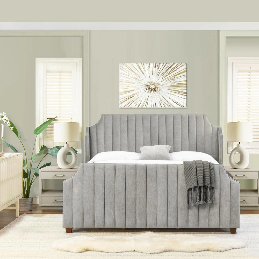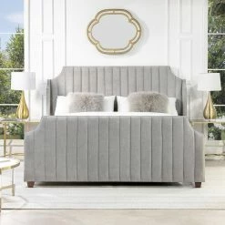 Create a bedroom oasis with the Addison Bed Set Collection by Jennifer Taylor Home. The lovely Belgrave silhouette stands out with clean, channel tufting on the headboard and footboard. The gentle wings bring an elevated shelter design to the whole bed frame. Panel bed supports are included, and require a box spring and mattress. This bed frame is also compatible with an adjustable base and mattress.