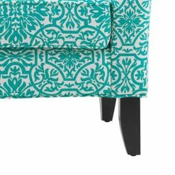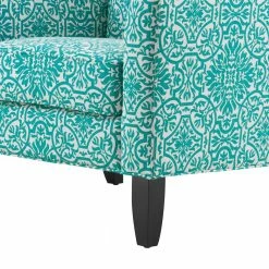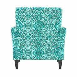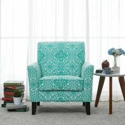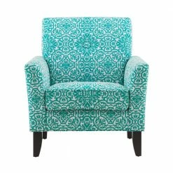 An inviting transitional designed arm chair with flared arms and a button tufted back. Covered in a 100% Polyester classic damask pattern fabric. Plush foam, fiber and independently wrapped pocket coil spring system for extraordinary comfort. Manufactured wood with solid veneers for added strength. Seats up to 300 lbs. Takes less than 15 minutes to assemble, no tools needed. Imported, color may vary.