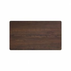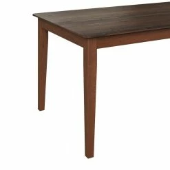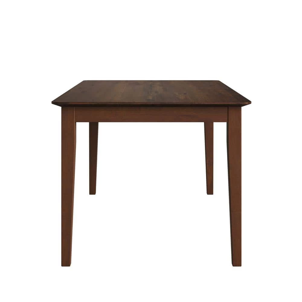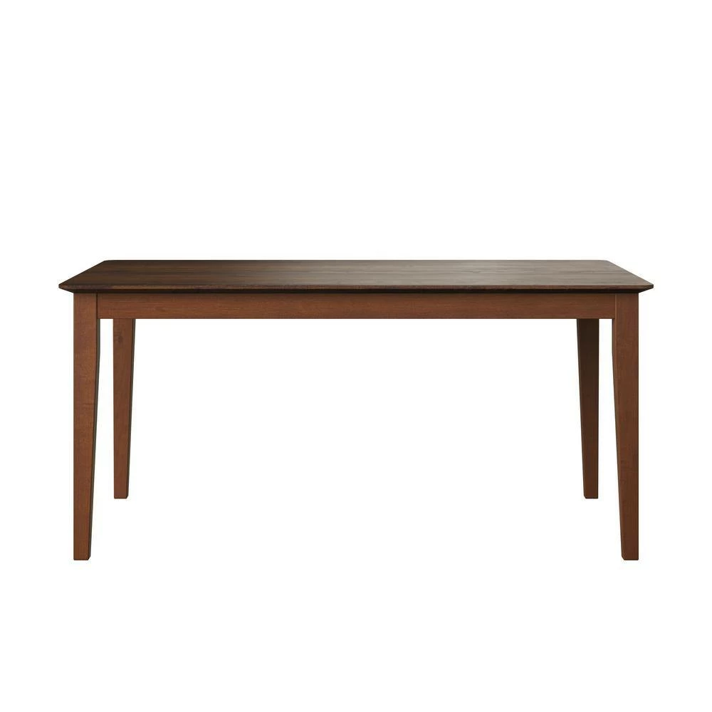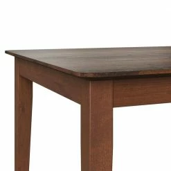 This rectangular dining table boasts a versatile transitional style designed to complement any home. The table features a high performance top with a walnut finish, built for durability and is scratch resistant. The high pressure laminated table top sits on a wood frame with four square tapered legs in a matching walnut finish that provides the perfect amount of style and support. Imported, color and veneer design may vary.
