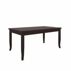 This 7-piece dining set includes 6 armless side chairs and an expandable rectangular dining table that boast an updated classic design that will elevate the look of your home. The chairs feature a solid wood frame and legs in an espresso brown finish with an upholstered seat and back cushion that provides the perfect amount of support for extraordinary comfort. The table features a rubber wood table top and four squared legs with a graceful curve near the bottom in an espresso brown finish that provides the perfect amount of style and support. This versatile table has a self-storing 15.75″ wide butterfly leaf allowing you to easily expand the table from 65″ to 80.75″ for larger family gatherings or entertaining. Takes less than 60 minutes to assemble with included instructions and tool for assembly. Imported, color may vary.