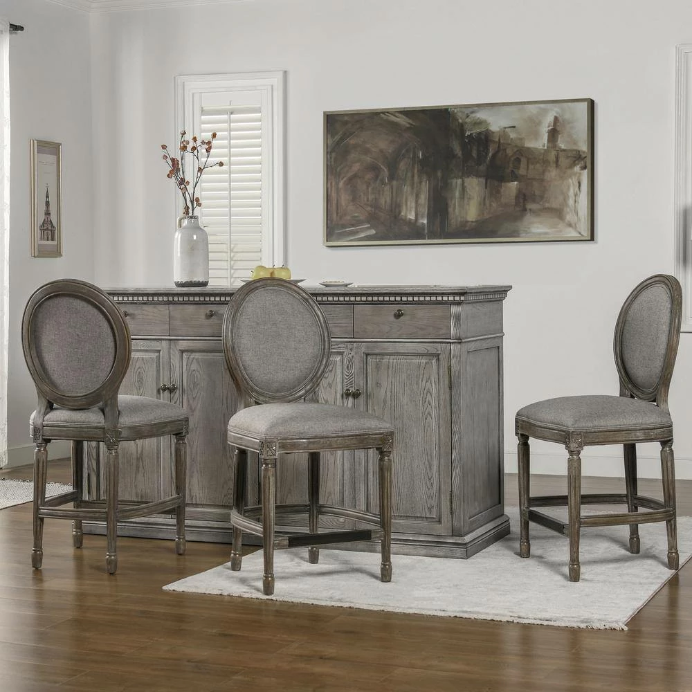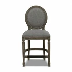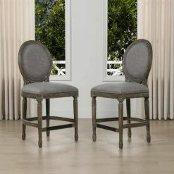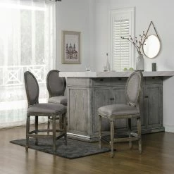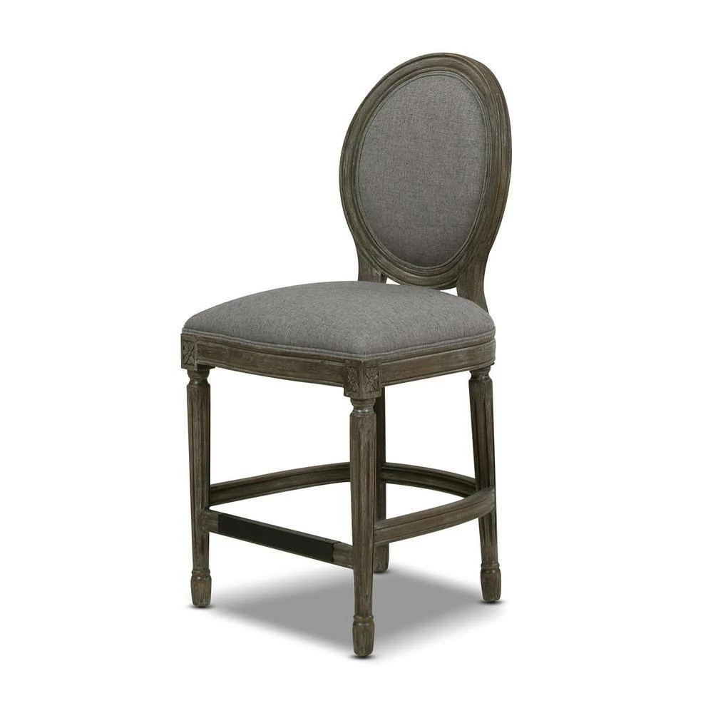 Bella Collection by Jennifer Taylor Home is beautifully crafted in the classic French country style. Featuring hand carved details on the solid wood frame, round back, and brass kickplate, the Bella Bar Stool embodies farmhouse chic at its finest. Use the Bella at your kitchen island or counter-height dining table for the perfect rustic montage. The armless design allows the stool to be pushed in completely to maximize any space. Made of quality materials and linen upholstery, look no further than the Bella for a set of counter height stools that will last a lifetime.