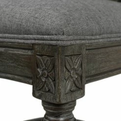 - Elegant carved wood accents and brass nailheads provide vintage chic