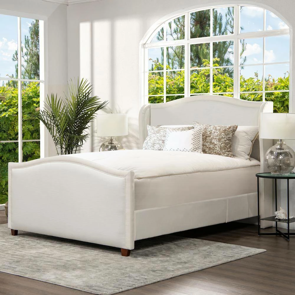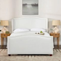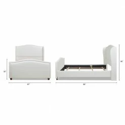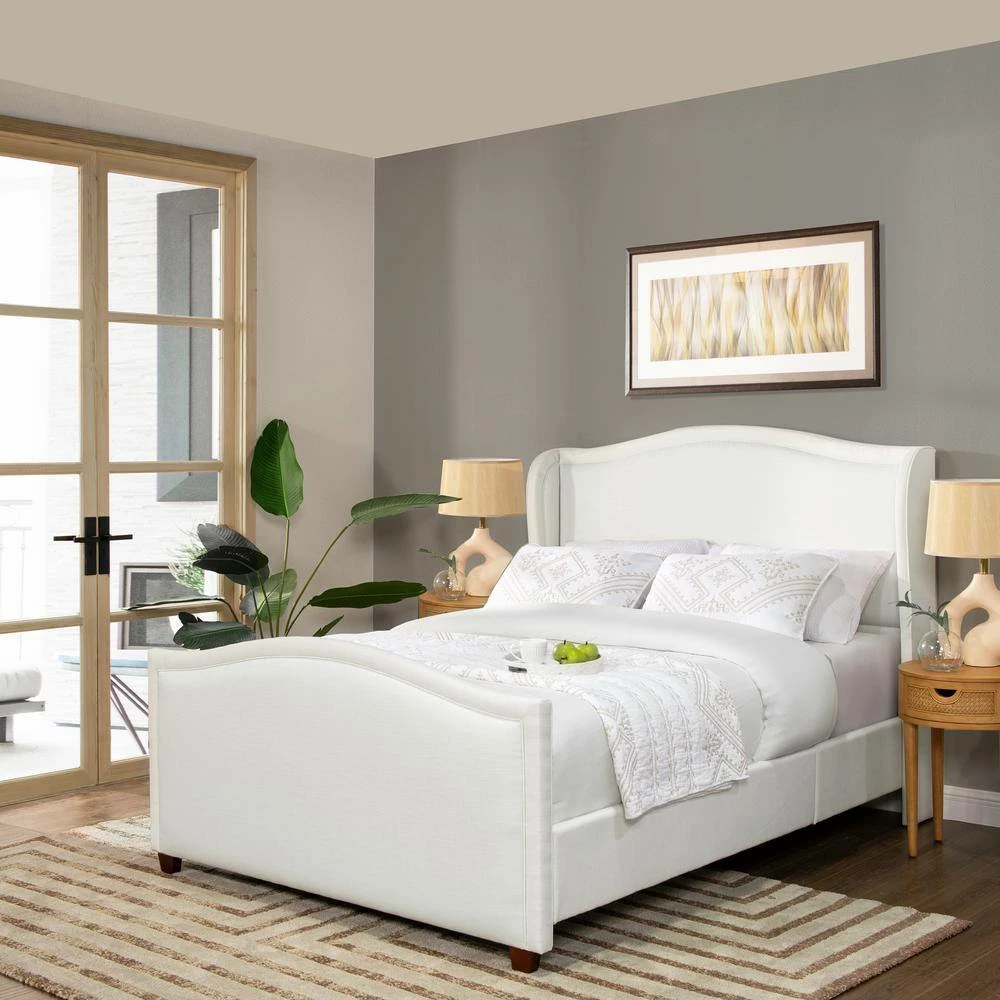 The Carmen Bed by Jennifer Taylor Home showcases a graceful wingback silhouette on a tall headboard with matching footboard. This panel style bed with modern farmhouse sensibilities suits a wide range of styles from transitional to coastal that is a timeless design. Offered in King and Queen sizes for the perfect statement piece to a master suite or guest room.