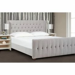 The David collection by Jennifer Taylor Home is the perfect addition to any bedroom looking to add a bit of a modern flair. The fabric selected for the collection features a polyester blend and engineered for long life. This wingback headboard bed is accented with a hand applied nail head trim along the wings’ silhouette and hand tufts throughout the headboard and footboard. Features:- Crafted from Birchwood, a deciduous hardwood that doesn’t molt or discolor over time, which makes it ideal for furniture making. – All exposed hardware has a Zinc finish- Woven Polyester wrapped premium flame retardant foam for a medium firm feel- Masterfully designed by experienced furniture craftsmen and women- Size Availability: King and Queen- Pattern: Solid- Main Fabric: Woven- Color: Antique White, Silver Grey, Dark Charcoal Grey, Sky Neutral, Dark Sapphire Blue, Jet Black- Weight capacity: 600 lbs.- Assembly required- Box spring required- Dry clean or spot clean only- Dimensions: 83 in. L x 88 in. W x 54 in. H- Leg Dimensions: 1.5 in. D x 3 in. W x 2.5 in. H- Weight: 104 lbs.