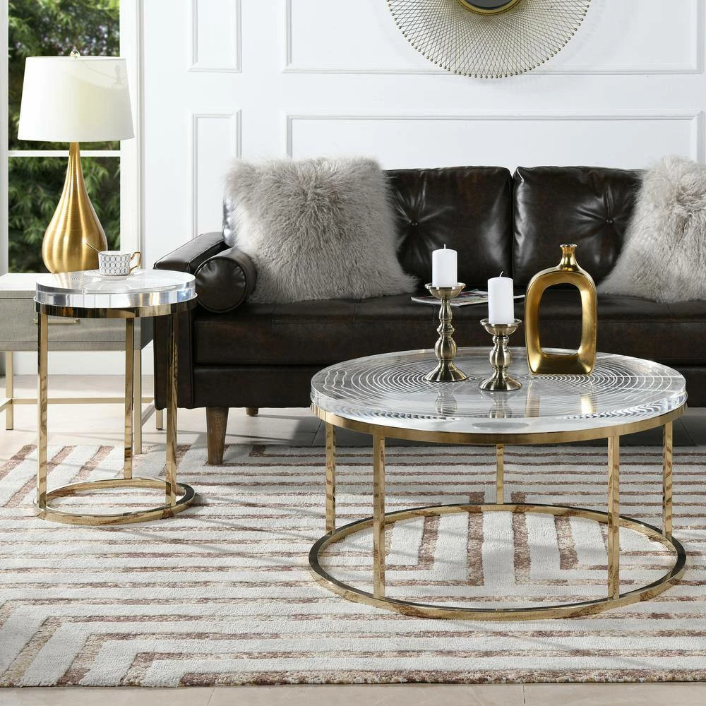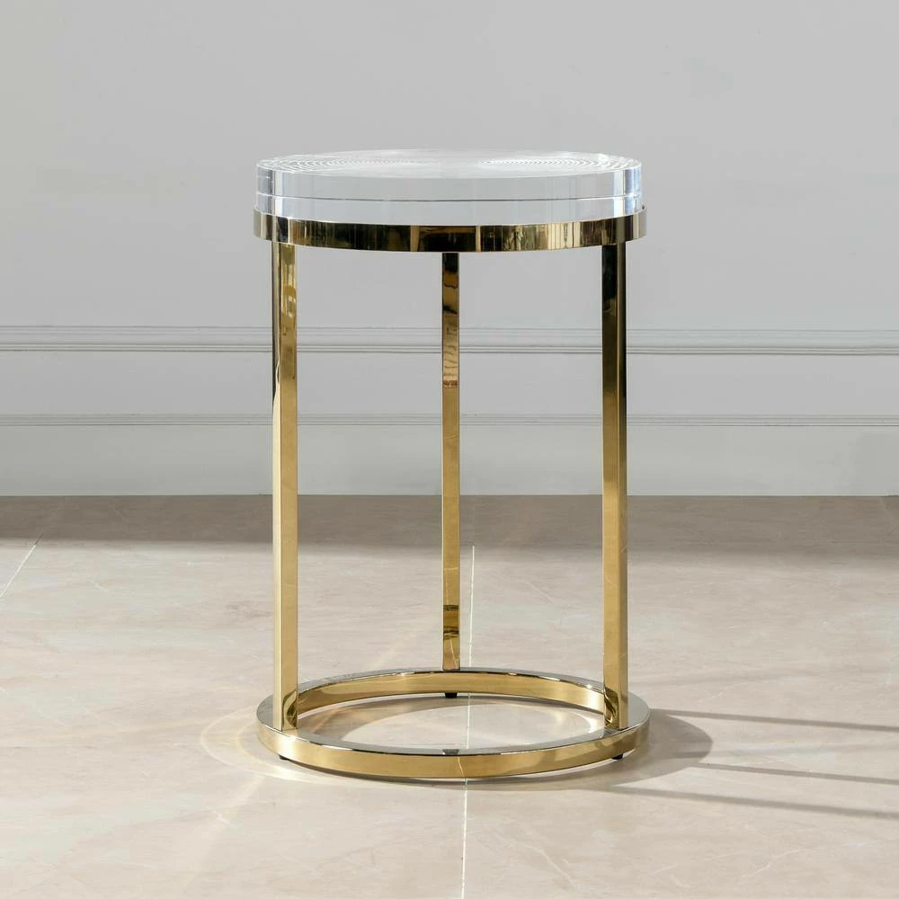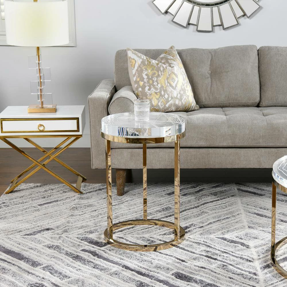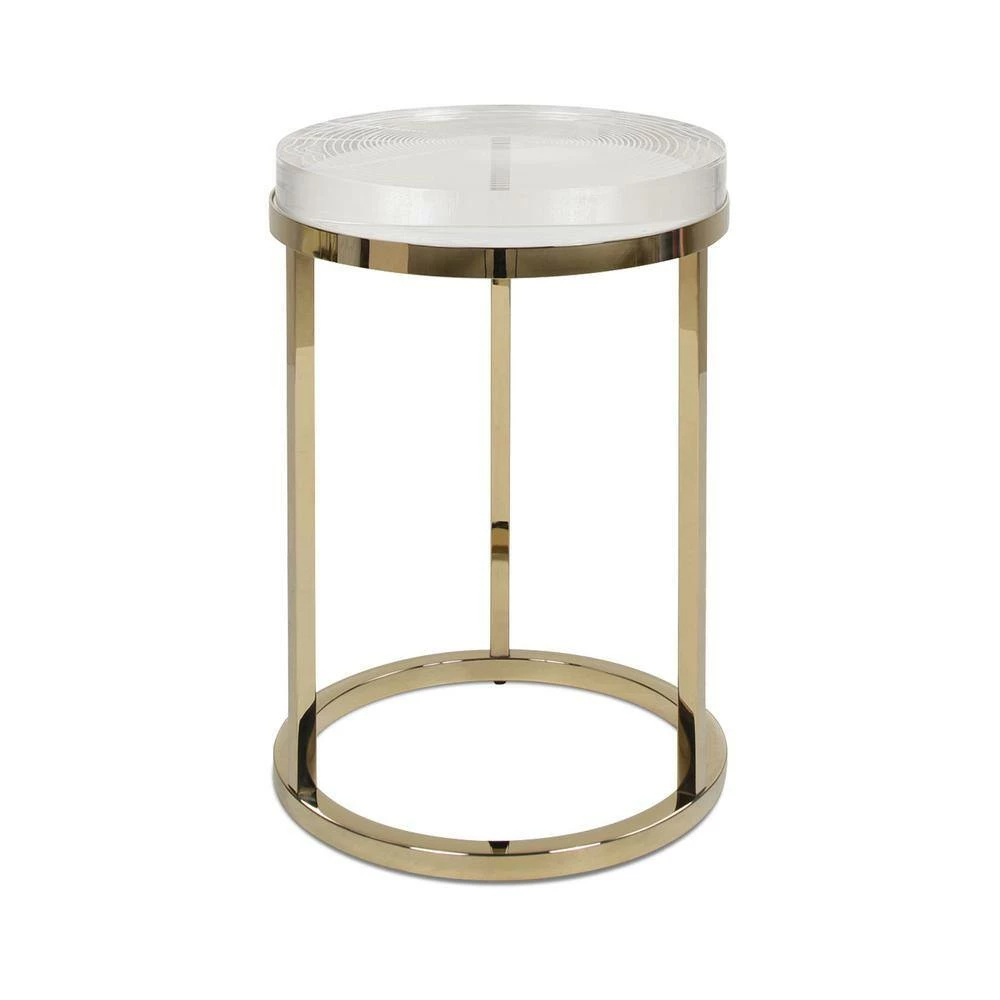 Inspired by nature’s design, the Dendros Accent Side Table by JTH LUXE is a luxe take on the natural shapes found in tree trucks. The thick acrylic table top is engraved in a tree ring pattern and the edges are carved to mimic the organic look of live edge wood. The gold stainless steel base support adds a touch of glamour. See the Dendros Collection for the matching round coffee table.