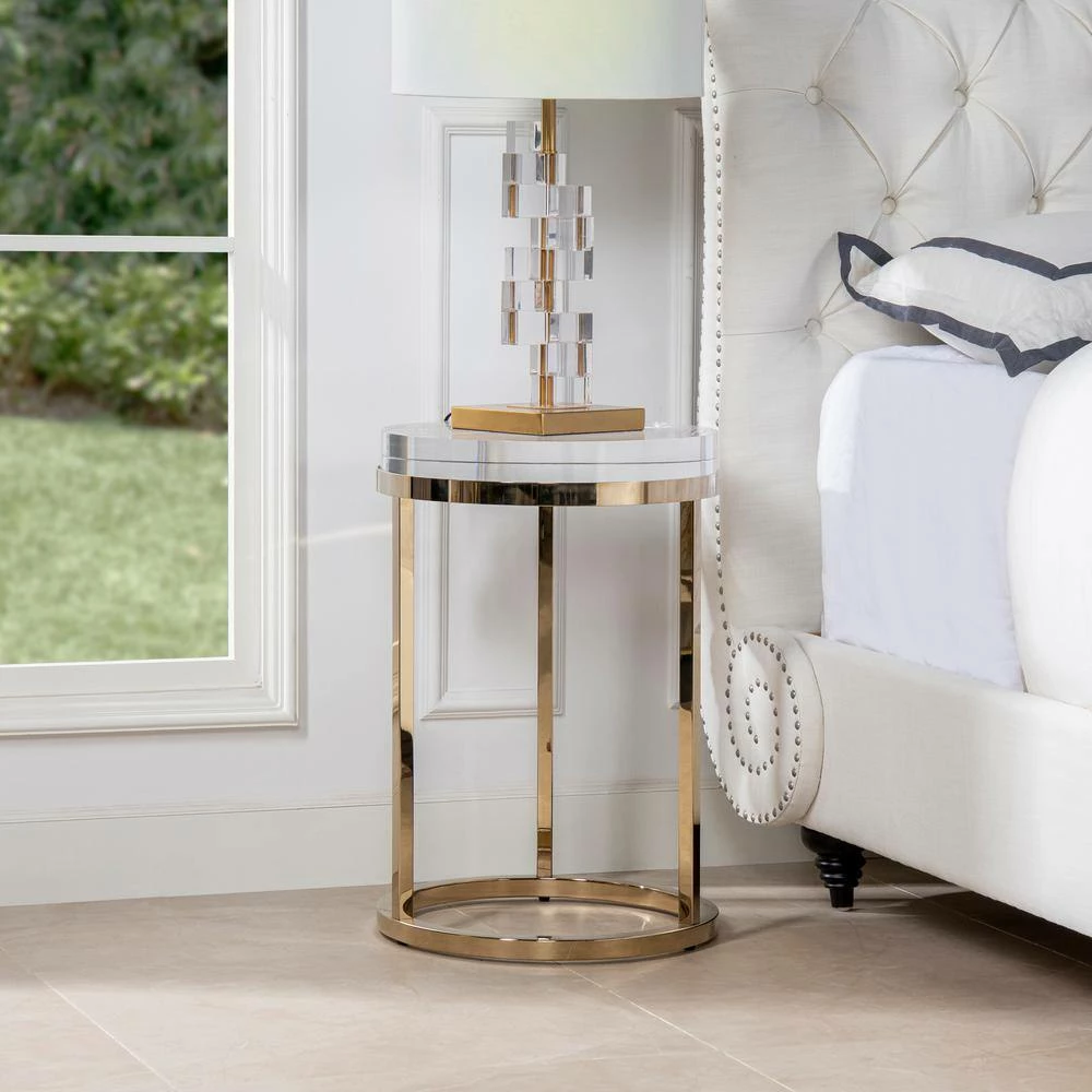 - Stainless steel welded base in a polished gold finish