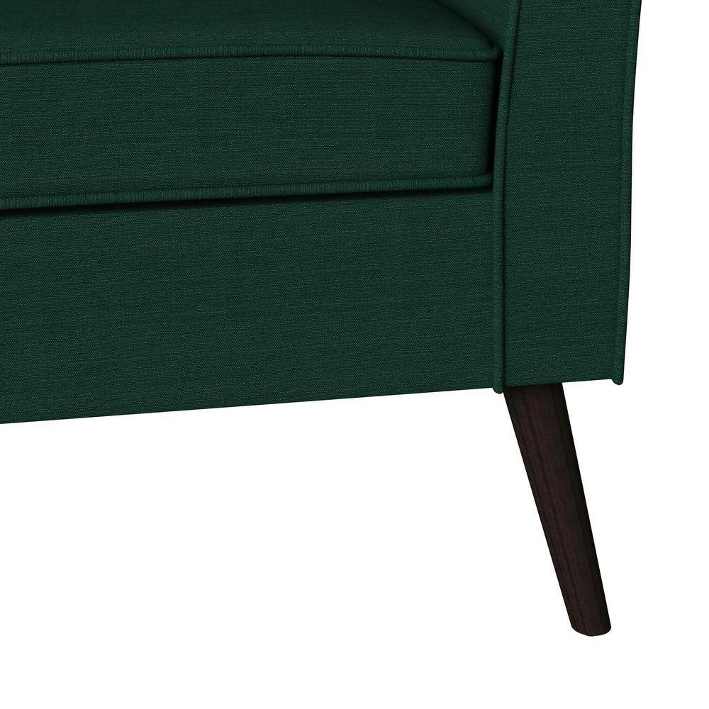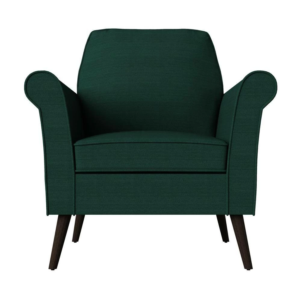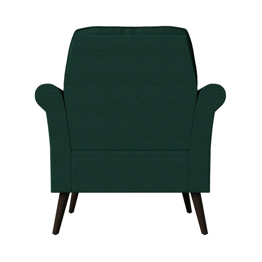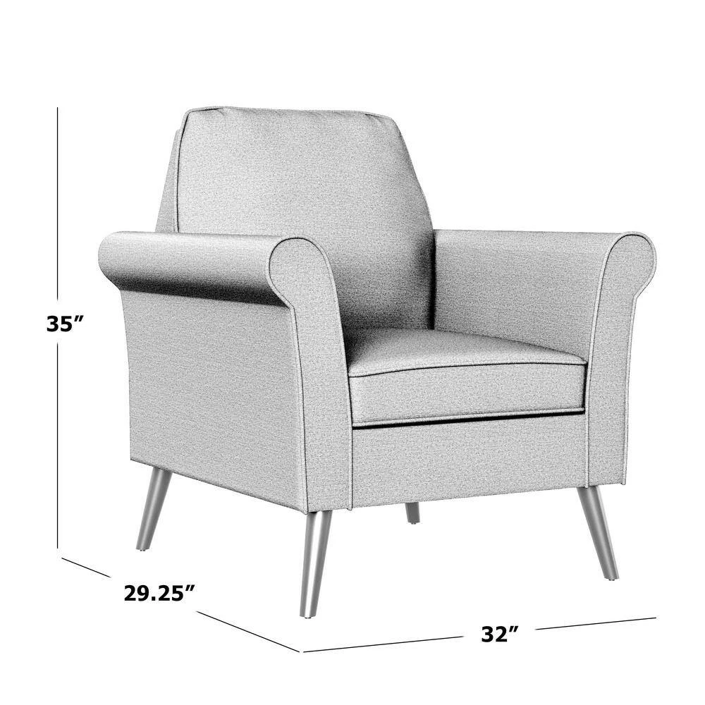 This armchair’s strong profile is softened by gently rounded flared arms and a tapered square back that give this piece a modern edge. Covered in a durable, easy clean 100% polyester fabric. The arms and seat cushion are detailed with welting for a tailored touch. Easily assembled with included tool and instructions. Imported, color may vary.