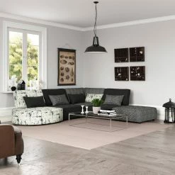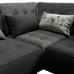 This modern modular 5-piece sectional sofa has a unique designer look and boasts a combination of straight and curved lines to provide a custom look for your home. The sectional features a corner chair, 2 armless chairs, an ottoman that can be added to the end to create a chaise, plus a rounded armless end chair for a dramatic look. In addition, the sectional has tight seat cushions with button tufted detailing for comfort and style. The versatile modular pieces allow you the flexibility to configure your sectional while the clip connection on the legs will keep the pieces securely attached. Includes 5 accent pillows.