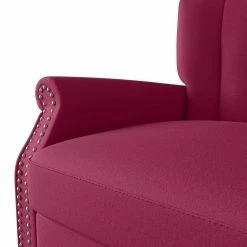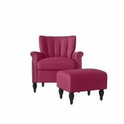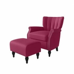 This updated traditional arm chair and ottoman set are not only comfortable but will provide a sophisticated elegance to your home. The chair features rolled arms adorned with hand tacked pewter nail head trim and a squared back with channel tufting that adds a dramatic touch. Perfect for a living room, bedroom or office. Covered in a durable, easy clean 100% polyester plush low-pile velour fabric. The chair features turned front legs and squared back legs and the ottoman features turned legs all in solid wood with an espresso finish. Easily assembled in about 30- minutes with included tool and instructions. Imported, color may vary.