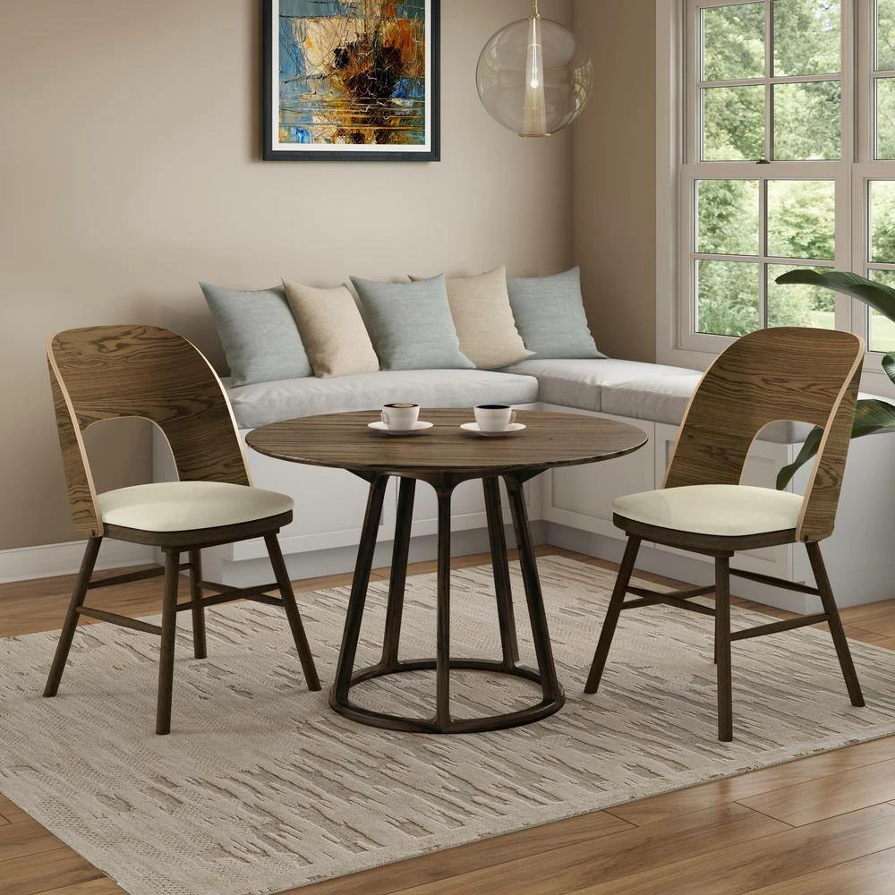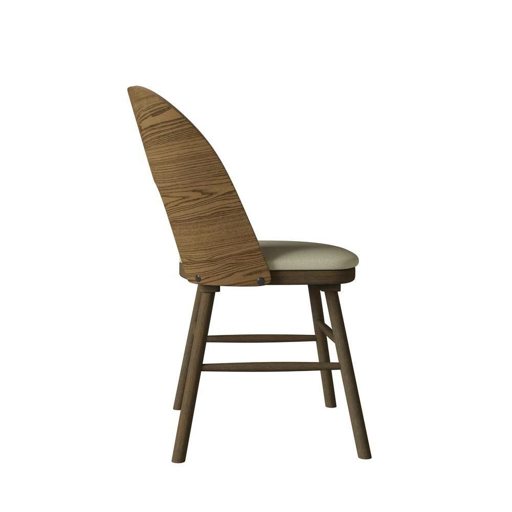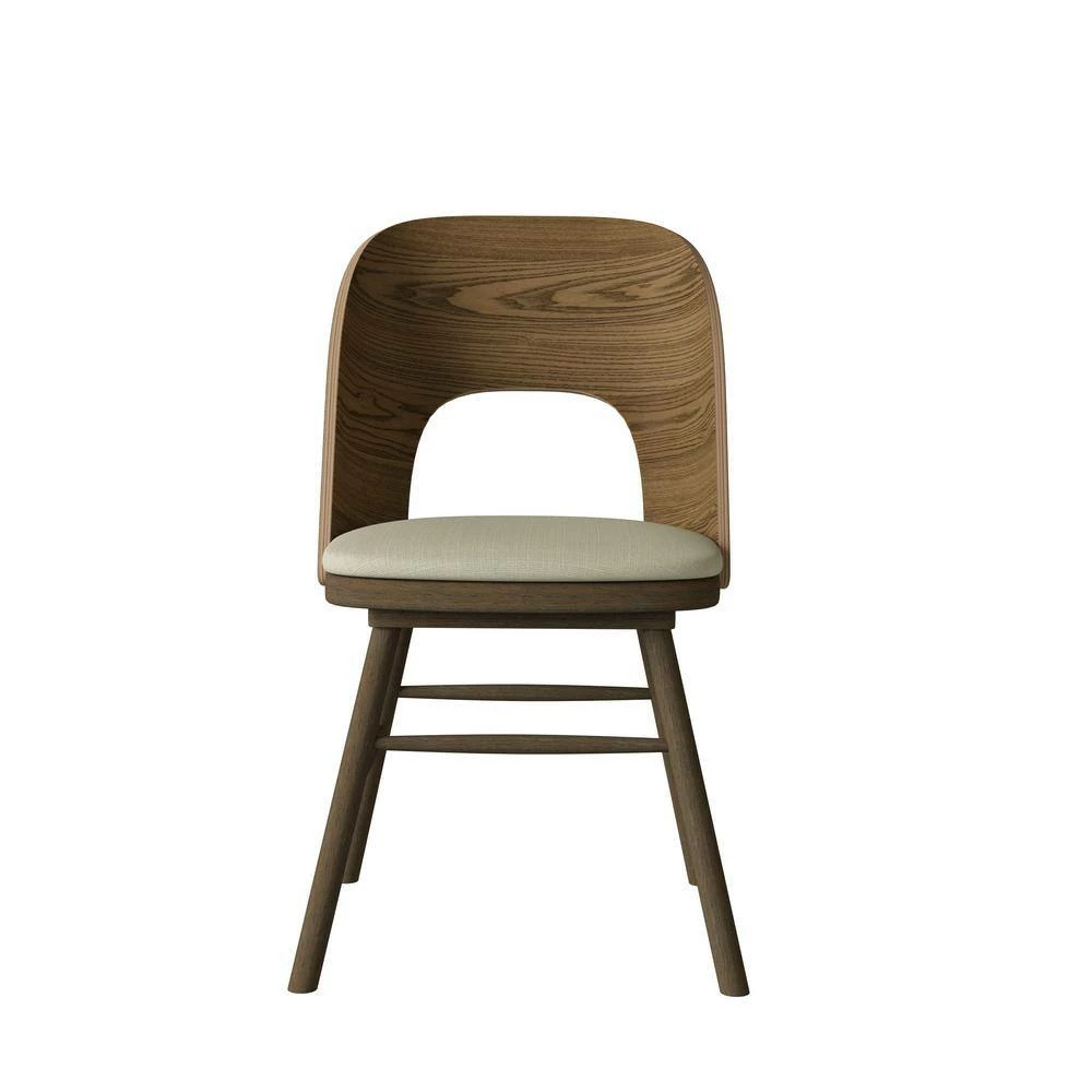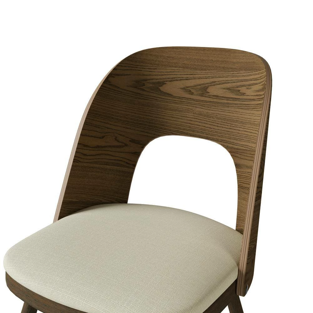 A timeless classic, this set of 2 armless side chairs celebrates the clean lines and understated design elements of the mid-century modern movement. Gently rounded square backs with cutout designs in a walnut finish provide comfortable support. The cushioned foam seats are upholstered in a linen-like fabric for a tailored touch. Assembly required with included tool and instructions. Imported, color may vary.