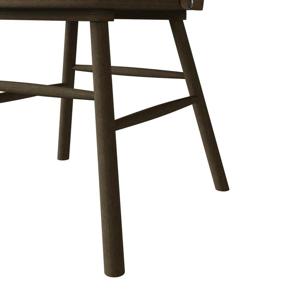 - Solid wood square legs with stretchers on sides and back that flare out slightly