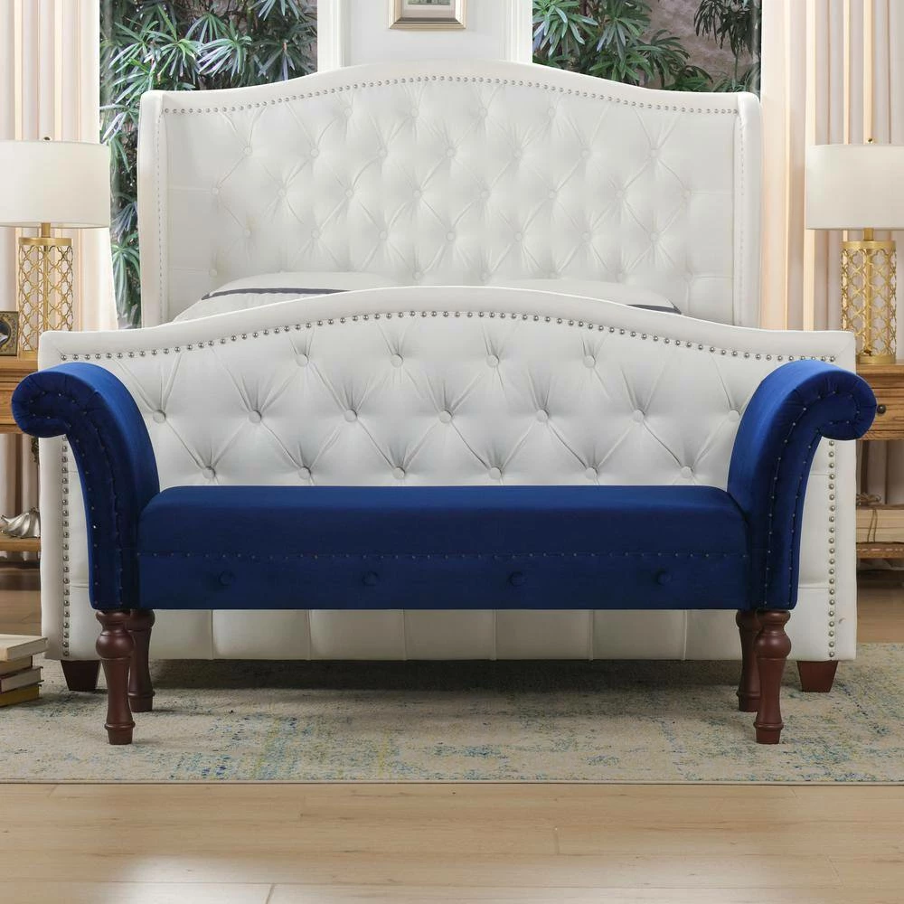 The Elise Collection entryway bench by Jennifer Taylor Home is the perfect addition to any living space looking to add a decorative flair. Upholstered in premium fabric and high-density foam padding, the sturdy solid wood frame provides exceptional support and stability. This piece is sure to stand out with its subtle hand-tufted buttons, elegantly rolled arms, and beautifully turned solid wood legs. The Elise is an ideal choice for the entryway, hallway, or bedroom. Jennifer Taylor Home offers a unique versatility in design and makes use of a variety of trend inspired color palettes and textures. Our products bring new life to the classic American home!