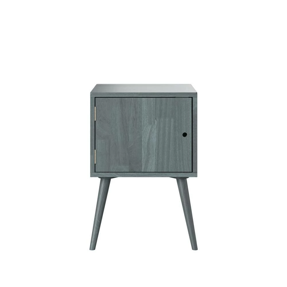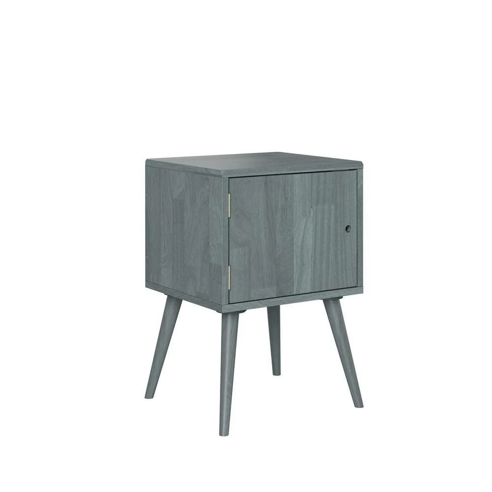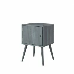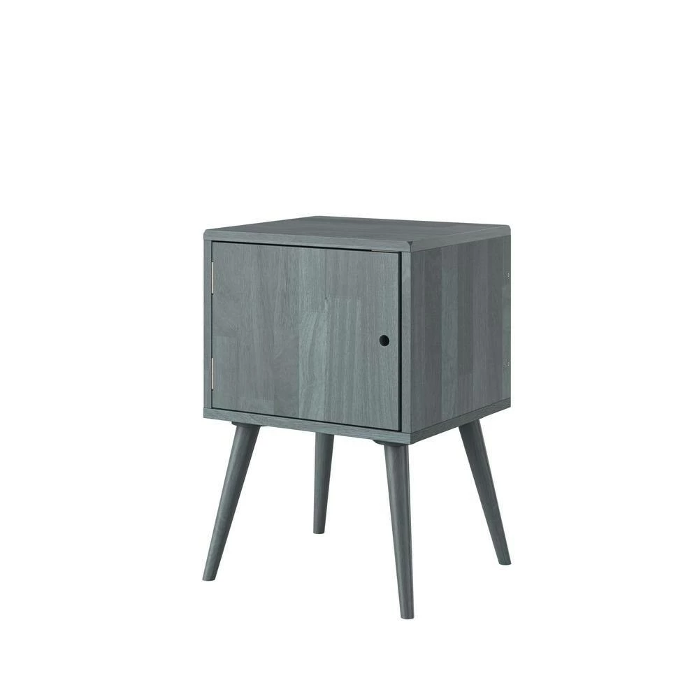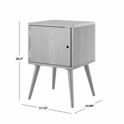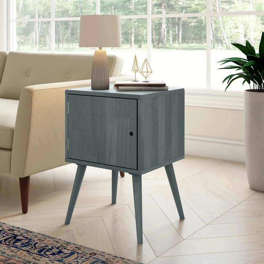 This mid-century modern cabinet style end table is sure to make a statement in your home. The square-shaped solid wood table is not only beautiful but a convenient storage solution. The simplicity of this cabinet makes it versatile enough to use as a side table or end table in a bedroom or living room. Interior of cabinet is roomy enough to store a variety of items. Imported, color may vary.