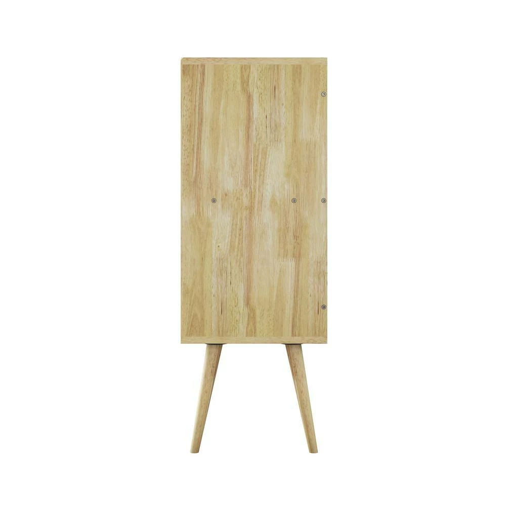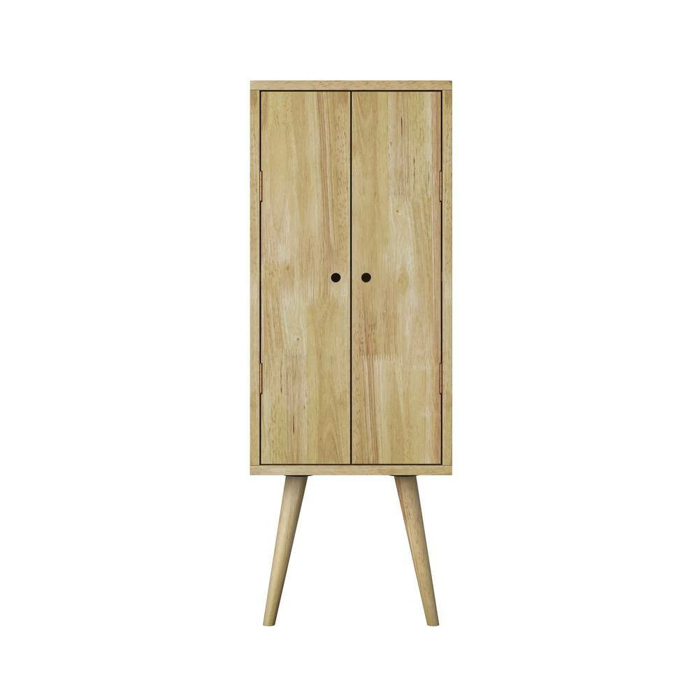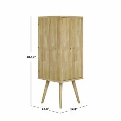 This mid-century modern cabinet is sure to make a statement in your home. The tall rectangular shaped solid wood chest is not only beautiful but a convenient storage solution for an entryway, hallway, bedroom or family room. The simplicity of this cabinet makes it versatile enough to use in any room. Interior of cabinet has a single shelf and is roomy enough to store a variety of items. Easily assembled in less than 40 minutes with included tool and instructions, as well as Phillip’s screwdriver (not included). Imported, color may vary.