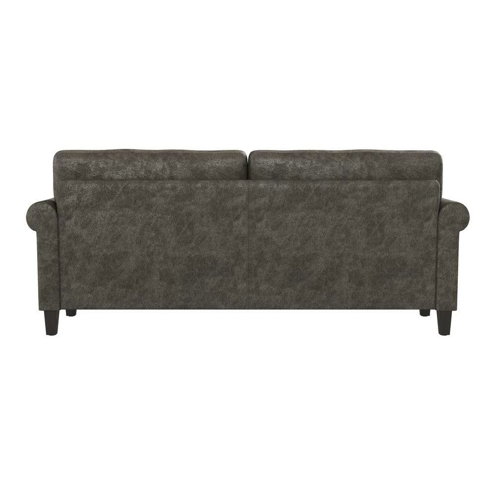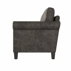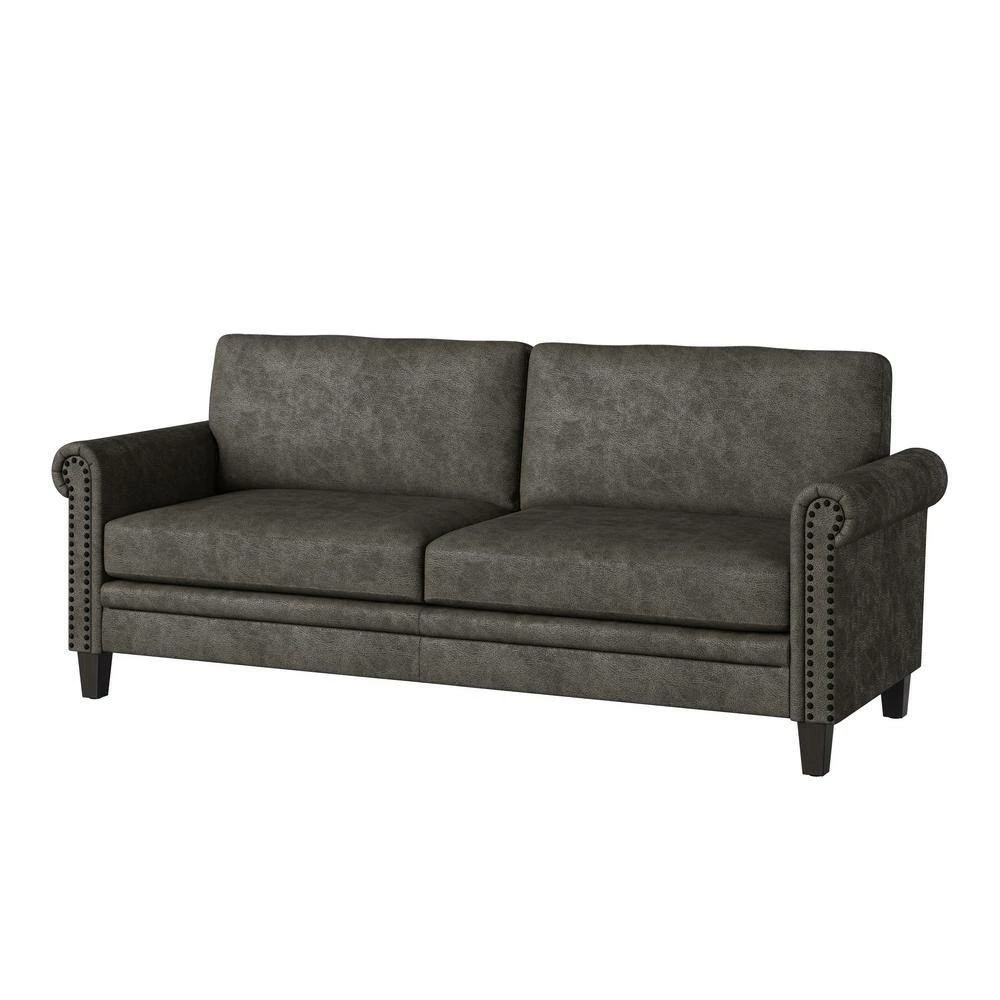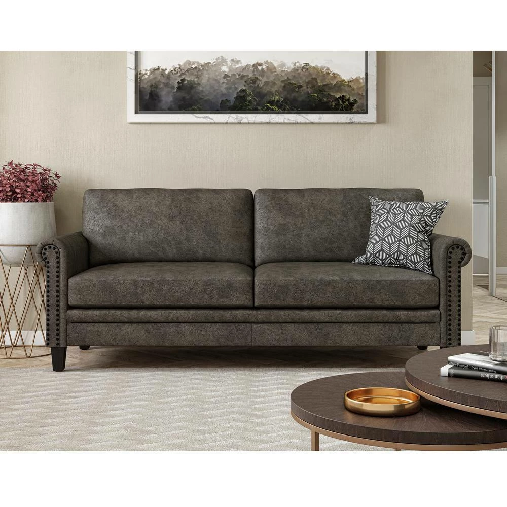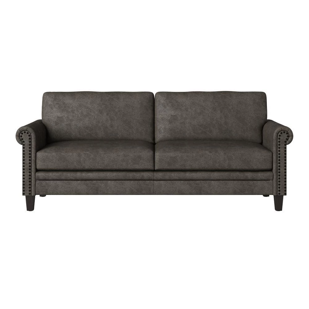 This sofa boasts a classic design that will elevate your home. The sofa features rolled arms that are accented with hand tacked bronze nailhead trim, square back cushions and attached box pillow seat cushion for a clean look with extraordinary comfort. HANDY LOCK easy connect, simply slide and click together in less than 15-minutes with included instructions. Seats up to 900 lbs. evenly distributed. Imported, color may vary.