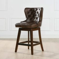 Look no further than the Holmes Bar Stool Collection by Jennifer Taylor Home for bar seating with classic and modern details. The 360 degree swivel seat allows you to access the stool from any direction and makes getting in and out of the seat with ease. The mid-high back is rounded and flared for maximum comfort and support while the armless design allows the stool to be pushed in completely when not in use. Rest your feet anywhere on the 4-sided footrest. Picture the Holmes counter stool at your kitchen island, dining room or bar and game room. Features: – Handmade by master furniture craftsmen for the highest level of quality – Sturdy frame of kiln-dried solid birchwood and layered plywood provides excellent support and stability – Upholstered in velvet atop a high-density foam cushion for a medium firm feel – Dust-lined high-strength sinuous spring suspension provides long lasting comfort and style – Easy clean and durable faux leather upholstery fabric that wipes clean – 360 degree swivel function for easy access to the seat – Traditional, Industrial, Modern, Farmhouse styles.