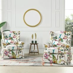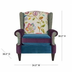 Invite the vibrant colors found in nature inside with the Indie Wingback Armchair by Jennifer Taylor Home. The beautiful floral pattern features India’s blue peacock on a bright white background for an eye-catching pop of color and life to a boho chic home. The high back, shelter silhouette, and lumbar pillow come together for a delightful seating experience, and the chair is finished with a crisp, pleated skirt for a polished look. The chair is slipcovered for easy cleaning and the seat cushion is removable with a zippered cover.