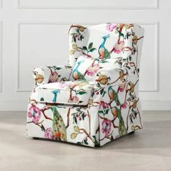 - High back support with shelter wing silhouette for a perfect reading or nursing chair