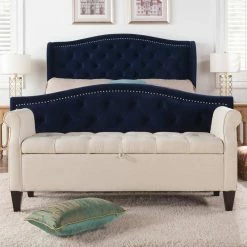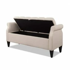 The Jacqueline Collection by Jennifer Taylor Home blends form with function in an elegant line of modern storage benches. Featuring luxuriant upholstered fabric accented with stylish rolled arms and dark espresso hardwood legs, this series provides both comfortable seating with hand-tufted cushioning and convenient organization with a spacious storage chest. Perfect for living rooms, bedrooms, or anywhere you need extra space, the Jacqueline Collection tidies your home in the finest fashion.