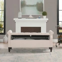 - Multi-function seating with a spacious storage chest beneath a 3-hinge fold-up seat