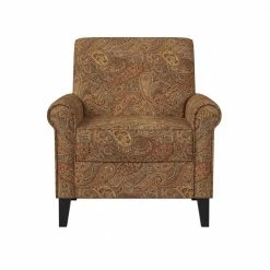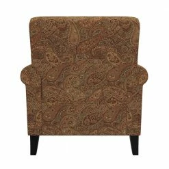 The Jean arm chair boasts a traditional roll arm design in a rich paisley fabric that will compliment a variety of home styles. The chair features a squared tight back design with a box style seat accented with welted trim. The seat cushion has thick foam and pocket coils over a sinuous spring seat deck for extraordinary comfort. Covered in a 100% Polyester multicolored paisley fabric with a rich burgundy background. Works great in home offices, bedrooms, recreational rooms or living rooms. Takes less than 15 minutes to assemble. Imported, color may vary.