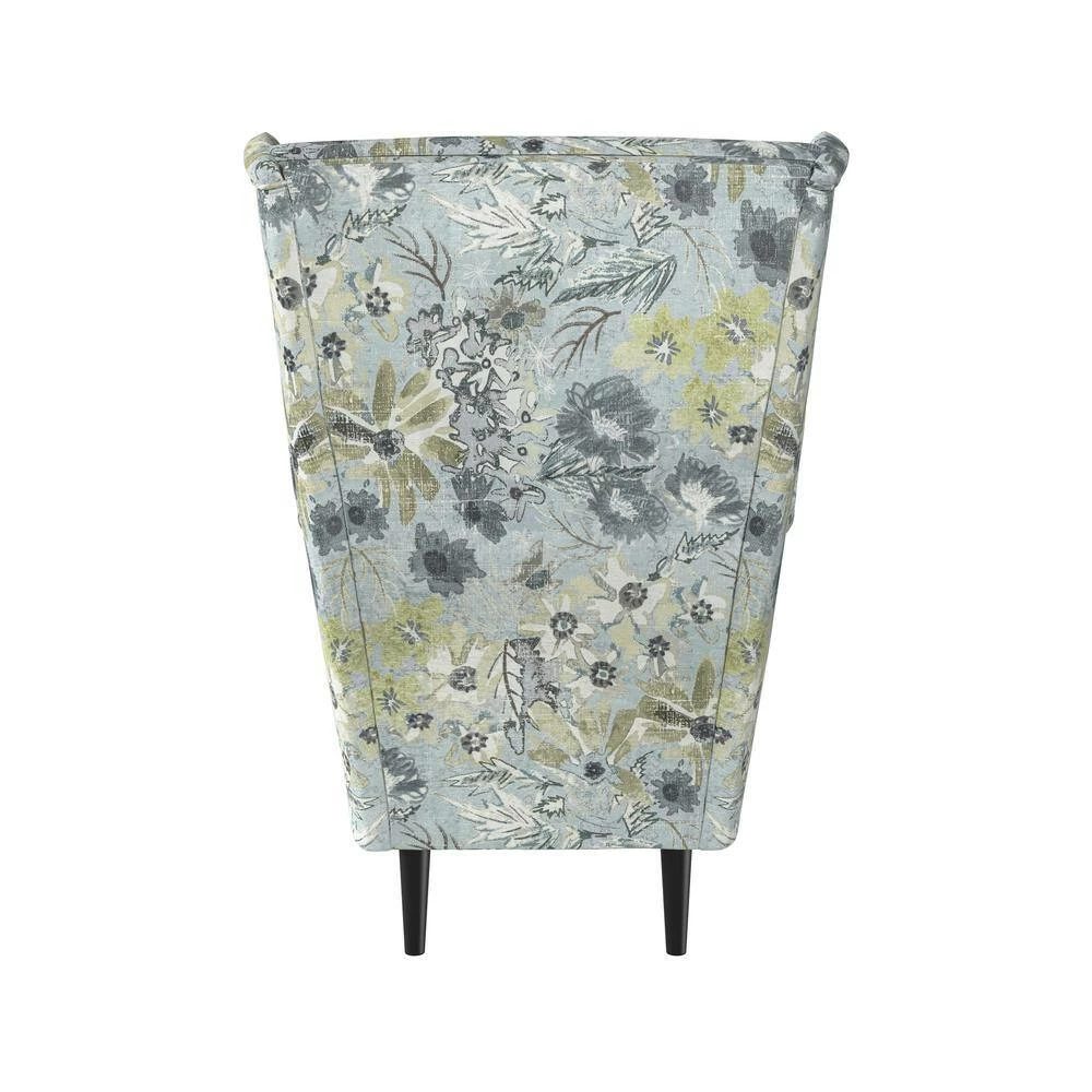 Offering a dramatic update on the traditional wingback chair, this version has an intriguing tapered silhouette, a bustle back and gently rounded arms. Covered in a durable, easy clean fabric made from 100% polyester, the chair is accented with welting around the arms and removable seat cushion. Assembly required with included tool and instructions. Imported, color may vary.