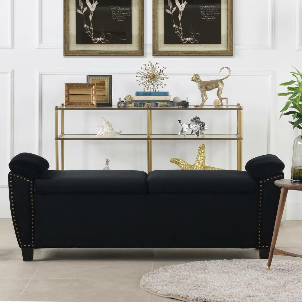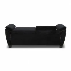 Tidy up your home in the softest style with the Jolene Collection by Jennifer Taylor Home! This line of handcrafted storage benches provides cloud-like comfort with two lush cushioned armrests and luxurious velvet upholstery while also offering convenient storage space with a spacious storage chest beneath 2 removable seats. Accented with sophisticated dark espresso legs and classic antique brass nailheads, these storage benches are an elegantly comfortable match for bedrooms, living rooms, and more.