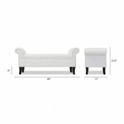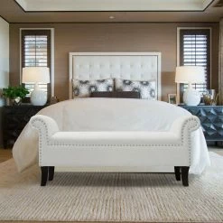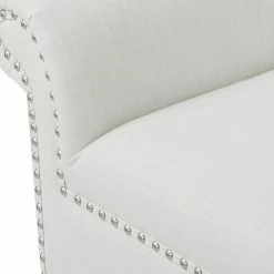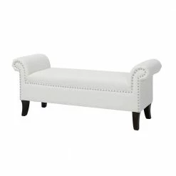 The Kathy Collection by Jennifer Taylor Home is the perfect addition to any living space looking to add a bit of a contemporary flair. Wrapped in high-quality fabric, the solid wood frame is made from kiln-dried birch which provides exceptional support and stability. The clean look of this bench and its nail head accent trim along the edges makes it a lovely addition just about anywhere around your home or office. The Kathy roll arm accent bench is an ideal choice for the entryway, hallway, or living areas. This bench brings class and lounging comfort to any room in the home. Jennifer Taylor Home offers a unique versatility in design and makes use of a variety of trend inspired color palettes and textures. Our products bring new life to the classic American home!