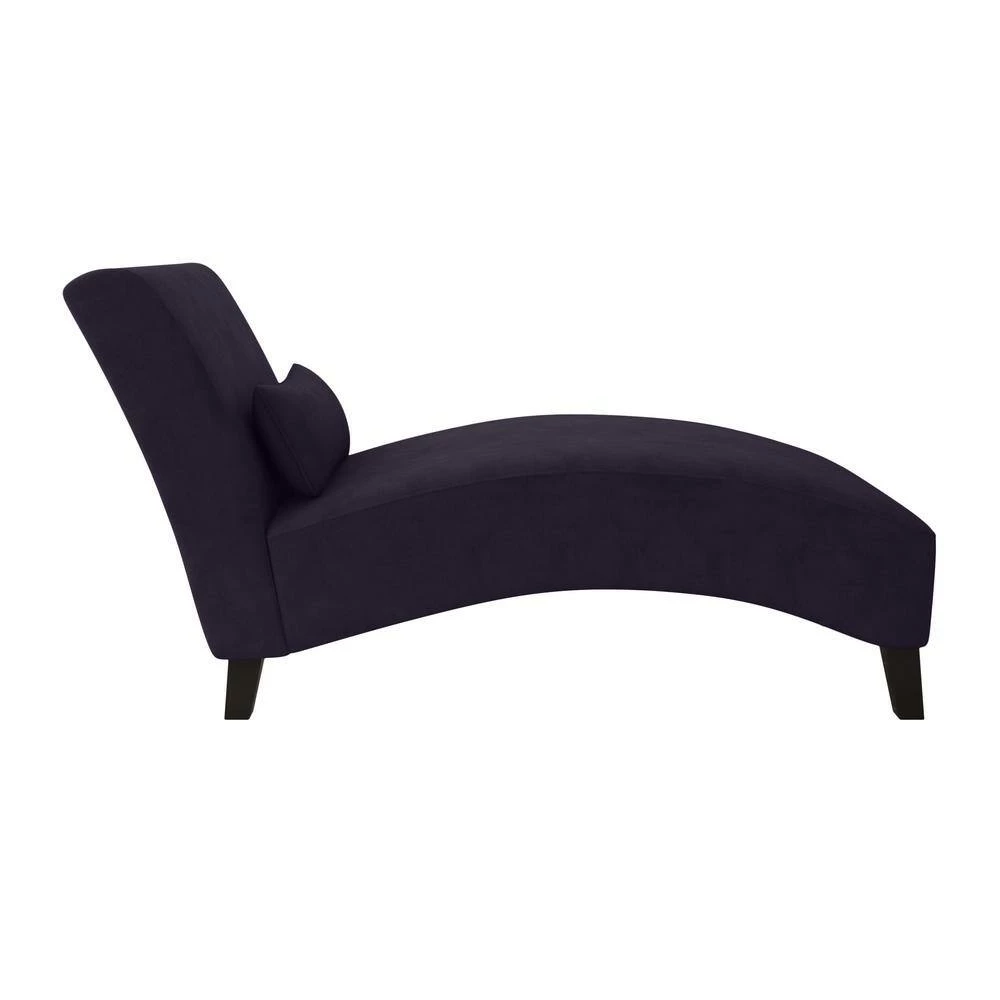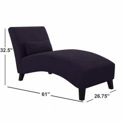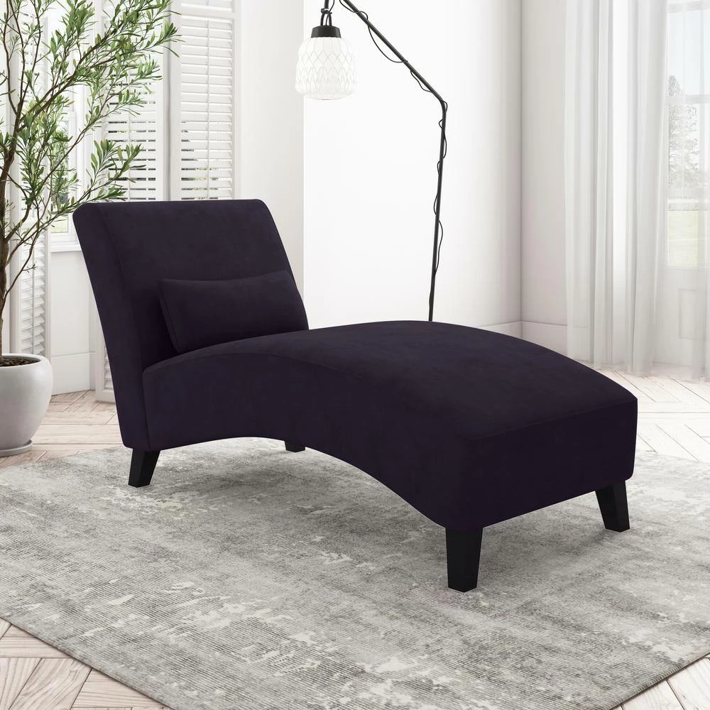 This chaise features a contemporary sleek design with clean lines, a curved seat and arched back. Enhance your home decor with this unique chaise lounge chair. Covered in a 100% polyester soft deep plum velvet-like fabric. Unique piece of furniture has inviting curves. Chaise assembles easily to instantly create the perfect relaxation area in the living room or bedroom. Ships in 1-box. Takes less than 30 minutes to assemble with included instructions. Imported, color may vary.