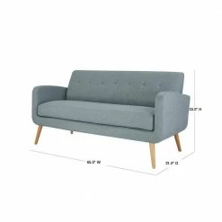 Sofa boasts a mid century modern design that will elevate your home. The sofa features a square back with lace tufted design, sinuous springs and a thick foam cushion for extraordinary comfort. Covered in a woven textured 100% polyester fabric. HANDY LOCK easy connect, simply slide and click together in less than 15 minutes with included instructions. Ships in one (1) box. Imported, color may vary.