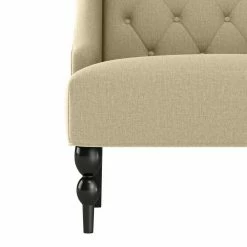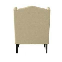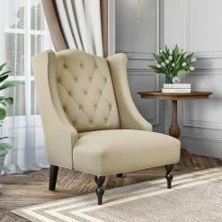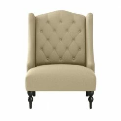 This wingback chair boasts a modern update of a classic design that will transform the look of your home. The chair features a slightly arched shaped button tufted back design. The winged sides gently slope down to the seat for exquisite style. Covered in a durable, easy clean 100% polyester textured linen-like fabric. Easy assembly in less than 20-minutes with included tool and instructions. Imported, color may vary.