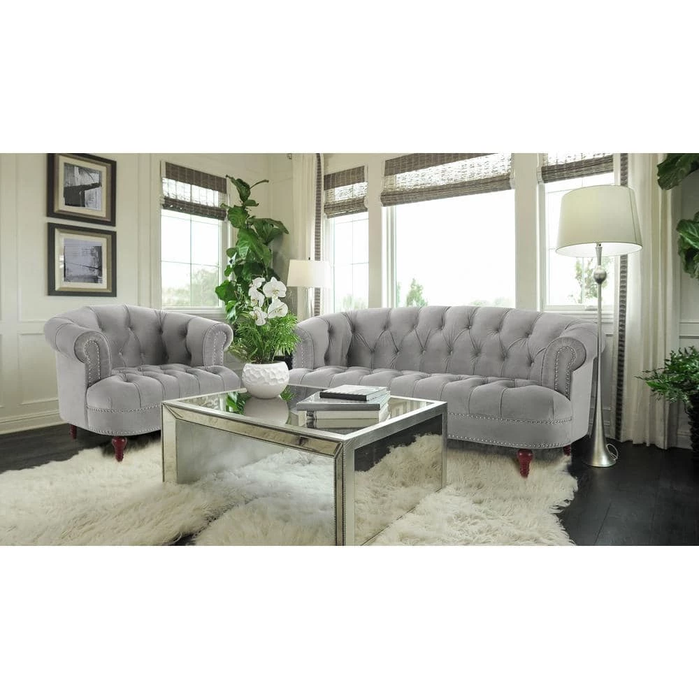 The La Rosa Collection by Jennifer Taylor Home is the perfect addition to any living space looking to add a bit of a style and charm. Upholstered with high-quality fabric, the solid wood frame made from kiln-dried birch provides exceptional support and stability. This love seat is accented with ample hand tufted buttons along the seat and backrest with nail head accents along the outer edges and arms. The La Rosa is an ideal choice for the den, office, or living areas. This 2-seater love seat brings class and lounging comfort to any room in the home. Jennifer Taylor Home offers a unique versatility in design and makes use of a variety of trend inspired color palettes and textures. Our products bring new life to the classic American home!