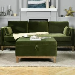 - Upholstered in fabric atop a high-density foam and down blend cushion for a luxurious medium firm feel