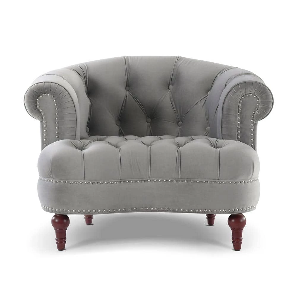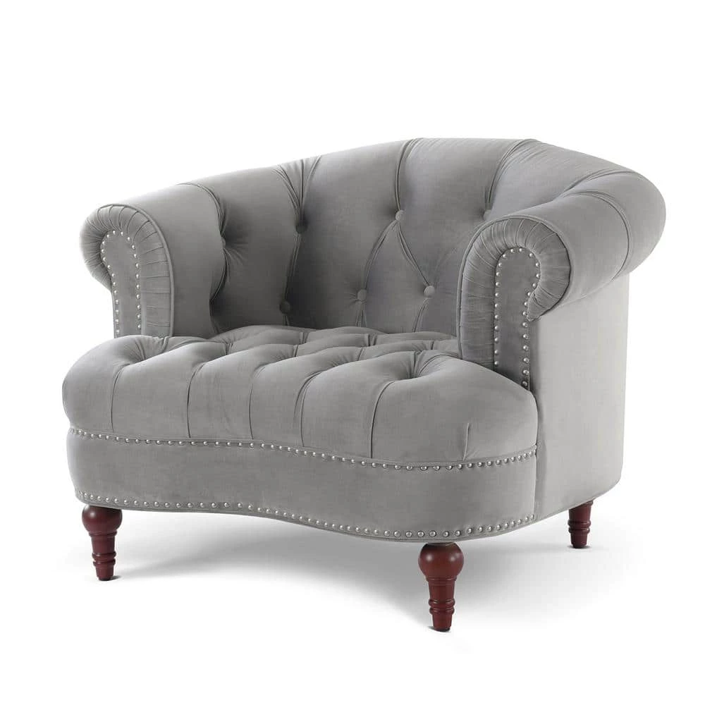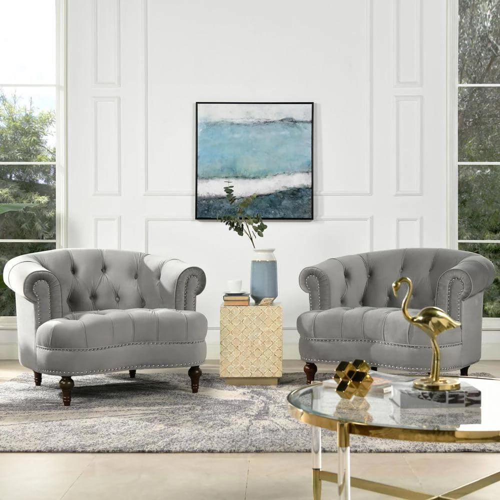 The La Rosa Collection by Jennifer Taylor Home is the perfect addition to any living space looking to add a bit of a modern contemporary flair. Upholstered with high-quality fabric, the solid wood frame is made from kiln-dried birch which provides exceptional support and stability. The ample tufting of the seat and back rest along with the nailhead accent trim gives the La Rosa Collection its distinct look and exuberant charm. Use it alone to make a statement piece, or in combination with the matching sofa, loveseat, and ottoman. Jennifer Taylor Home offers a unique versatility in design and makes use of a variety of trend inspired color palettes and textures.
