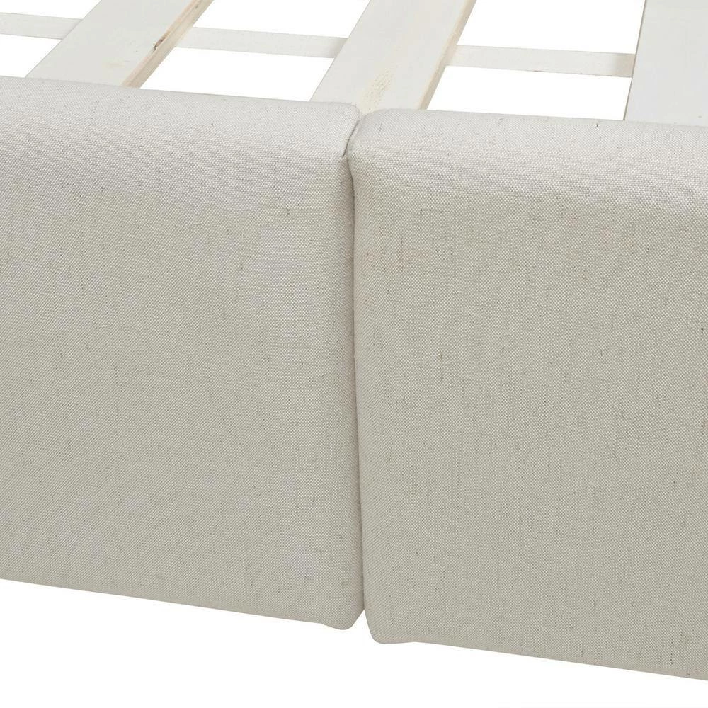 - Upholstered in high-quality woven fabric atop premium high-density flame-retardant foam for a luxurious medium firm feel