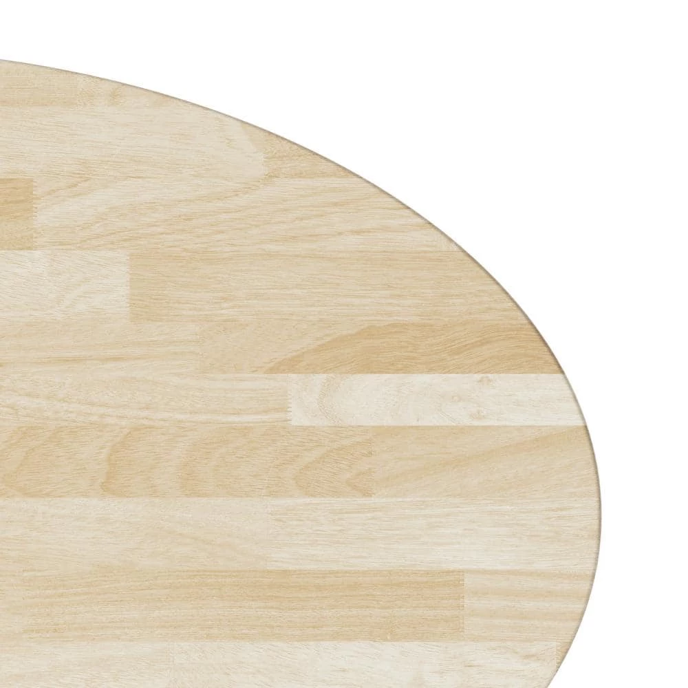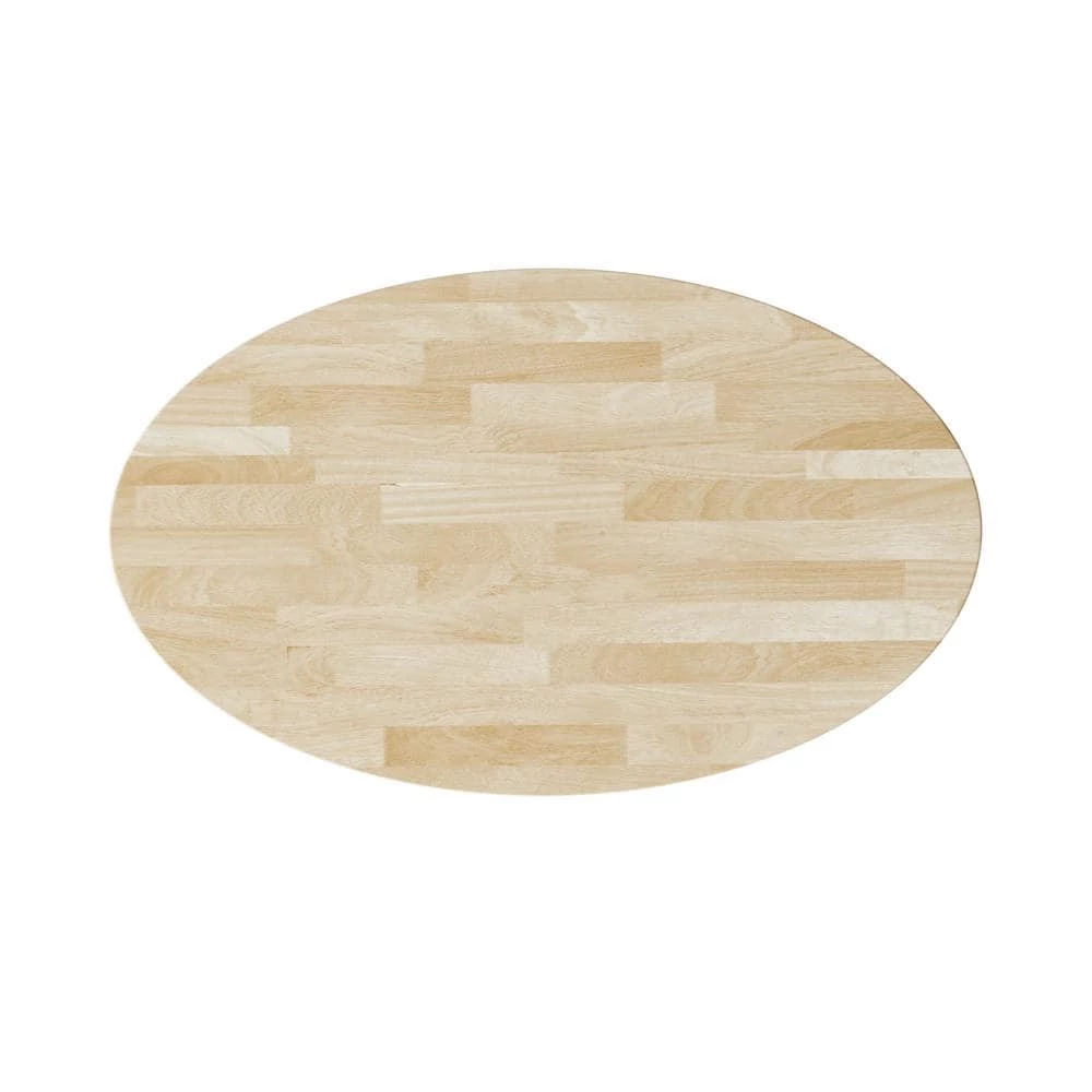 This cocktail table sports a modern design and will be a great addition to your home. The solid rubberwood table features an oval top and is complemented by round legs that flare out slightly. Imported, color may vary.