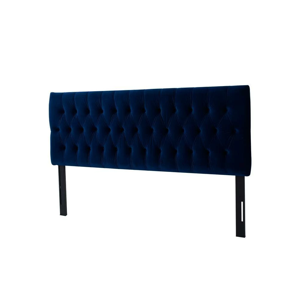 The Maya collection by Jennifer Taylor Home is the perfect addition to any bedroom looking to add a bit of a modern flair. The fabric selected for the collection features a polyester blend and engineered for long life. The wood frames are made from kiln dried Birchwood which provides exceptional support and stability. This headboard is accented with hand tuft design throughout. Features:- Crafted from Birchwood, a deciduous hardwood that doesn’t molt or discolor over time, which makes it ideal for furniture making. – All exposed hardware has a Zinc finish- Woven Polyester wrapped premium flame retardant foam for a medium firm feel- Masterfully designed by experienced furniture craftsmen and women- Height adjustable legs to allow the perfect height for your preference- Size Availability: King and Queen- Pattern: Solid- Main Fabric: Woven, Velvet- Color: Antique White, Navy Blue- Some assembly required- Dry clean or spot clean only- Dimensions: 80.5 in. L x 3.5 in. W x 51-57 in. H- Weight: 37 lbs.