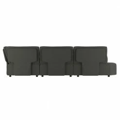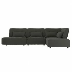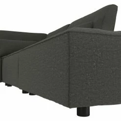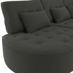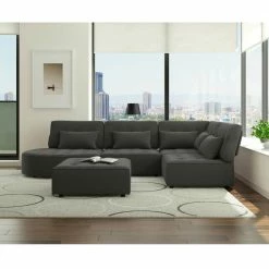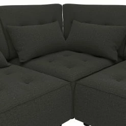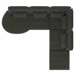 This modern modular 5-piece sectional sofa has a unique designer look and boasts a combination of straight and curved lines to provide a custom look for your home. The sectional features a corner chair, 2 armless chairs, an ottoman that can be added to the end to create a chaise, plus a rounded armless end chair for a dramatic look. In addition, the sectional has tight seat cushions with button tufted detailing for comfort and style. The versatile modular pieces allow you the flexibility to configure your sectional while the clip connection on the legs will keep the pieces securely attached. Includes 5 accent pillows.