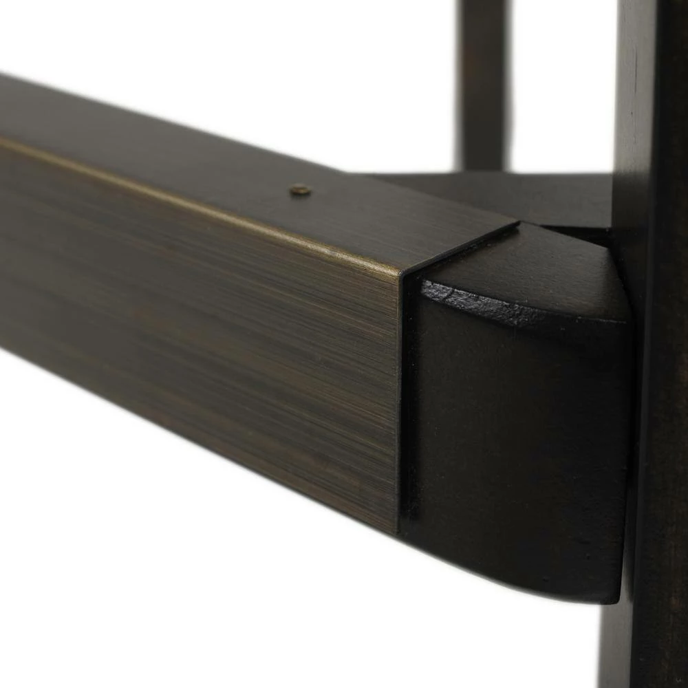 - Hand-applied iron nailhead accents are finished in antique brass to provide classic chic