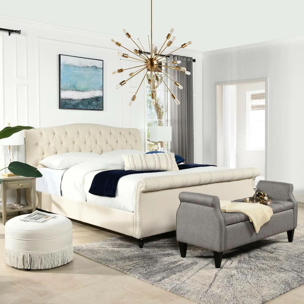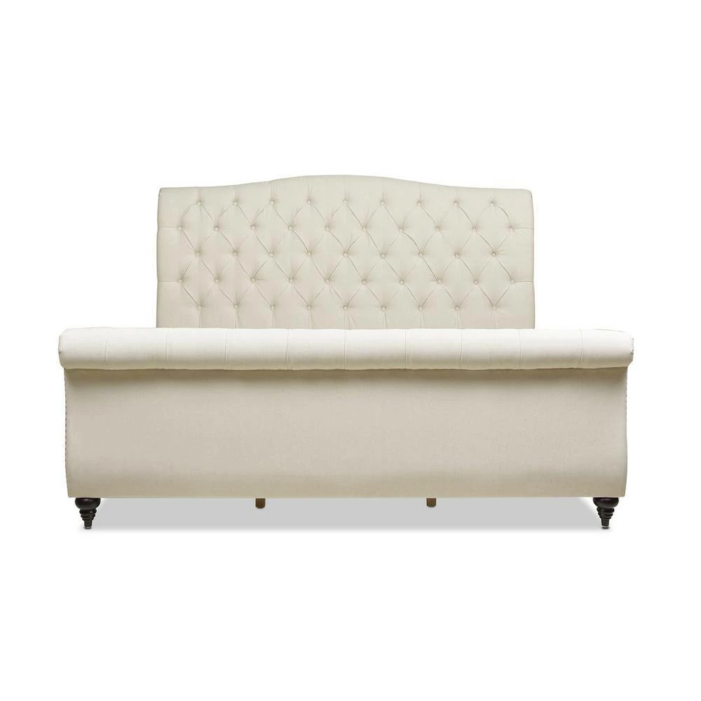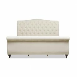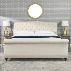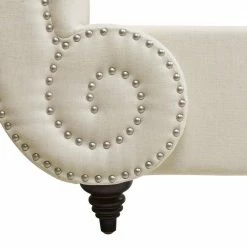 The Nautlius Bed Collection by Jennifer Taylor Home is a showcase of the natural curves and shapes found in coastal waters. This beach inspired design is an elevated statement piece for, any master bedroom suite, with the tall, rolled headboard with deep button tufting and hand applied nail heads. The matching footboard completes the bed frame. This-panel bed requires a box spring and mattress.