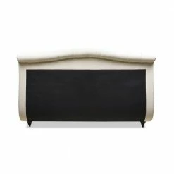 - Available in navy blue velvet, antique white polyester, and light beige linen upholstery