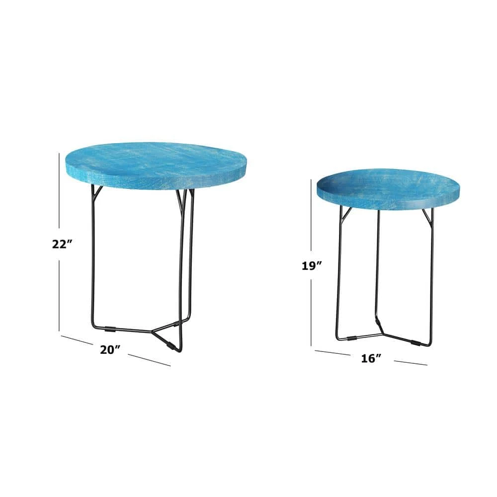 Artisans in India expertly craft our side tables by hand, with circular, rough-hewn wood tabletops in a blue wash finish that highlights the beauty of the grain. Offering the utmost in versatility, this set of 2 occasional tables come in 2 sizes and can be displayed individually or in multiples for maximum impact. Fully assembled. Imported, color may vary.
