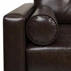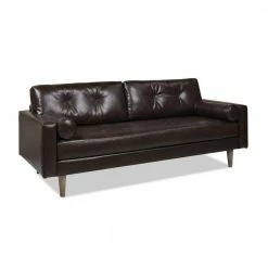 Infuse your living space with modern vibes with a statement piece like the Nicholas Mid-Century Modern Sofa Collection by Jennifer Taylor Home. The sleek track arms, overstuffed back pillows, and square tufted seat come together for a beautifully chic and comfortable 3-seater sofa. The naturally textured gray-brown solid wood legs add a touch of rustic-modern elegance.