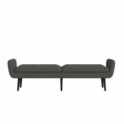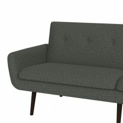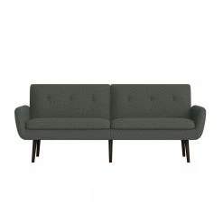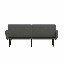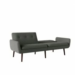 Perfect for unexpected guests or studio apartments, this ingeniously designed sofa with tapered arms converts into a full-size sleeping surface in an instant. Covered in a multi-speckled, tweed-like woven fabric made from 100% polyester, the sleeper sofa gets its mid-century style from a streamlined silhouette. Easily assembled with included tool and instructions. Imported, color may vary.
