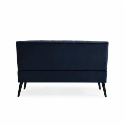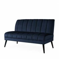 This armless loveseat boasts a mid century modern design that will elevate your home. The loveseat features a square back with channel tufted design, sinuous springs and a thick foam cushion for extraordinary comfort. Covered in a durable, easy clean 100% polyester soft to the touch navy blue velvet-like fabric. Ships in 1-box. Imported, color may vary.