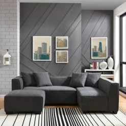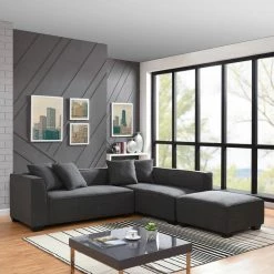 This Phoenix transitional sectional sofa boasts an L shaped design with clean lines that will elevate your home. The sectional features a lower profile back with four (4) accent pillows and an ottoman that can be placed anywhere you desire for extraordinary comfort and versatility. Covered in a durable easy clean 100% Polyester plush low-pile velour fabric. High density foam and fiber offers a comfortable and durable firm seating surface. Seats up to 1500 lbs. evenly distributed. Instructions and tool for assembly included. Takes less than 30 minutes to assemble. Imported, color may vary.